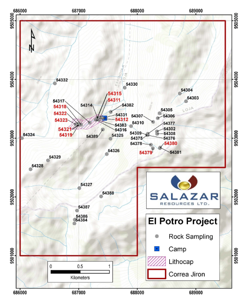 Fredy E. Salazar, President and CEO of Salazar Resources said, “I met the previous owners of the concession when they brought high-grade material from El Potro to the processing plant I own. We recognized that El Potro feed came from an area with real exploration potential. Our subsequent mapping and sampling identified numerous indications that El Potro contains a well-preserved porphyry system complete with a gold-bearing lithocap. It is a new and tremendously exciting early-stage exploration target.