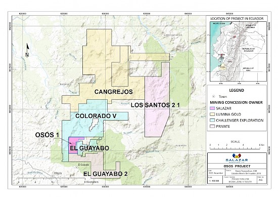 Figure 2. Location of Osos-1 concession, Los Osos project, El Oro, Ecuador