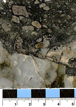 Photo 3. Mosaic Breccia, depth 338 m | Photo 4. Porphyritic Diorite, depth 505 m |